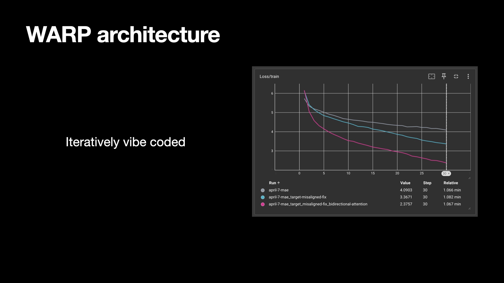 I kept feeding the single file into GPT o3 or GPT 5, either asking it to critique the code or describing specific problems I was running into. Sometimes I'd paste a CSV of the loss curve. It would give me detailed descriptions of what to do next, and I'd paste those into Cline with Sonnet 4.5 doing the actual coding. # |